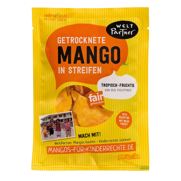 Mit dem Kauf dieser Mangostreifen entscheidest du dich nicht nur für Qualität und Geschmack, sondern auch für eine bewusst faire Wahl. Die Mangos stammen aus einem langfristigen Fair-Trade-Projekt, das in enger Partnerschaft mit der Kinderschutzorganisation PREDA auf den Philippinen umgesetzt wird. PREDA setzt sich seit Jahrzehnten für die Rechte und den Schutz von Kindern sowie faire Arbeitsbedingungen in landwirtschaftlichen Betrieben ein. Durch die direkte Zusammenarbeit mit Kleinbauernfamilien erhalten diese gerechte Löhne, stabile Absatzmöglichkeiten und Zugang zu sozialen Leistungen. So trägt jedes Produkt dazu bei, Lebensbedingungen vor Ort nachhaltig zu verbessern. Genieße die exotische Frucht mit einem guten Gefühl – denn echter Genuss beginnt mit Verantwortung.